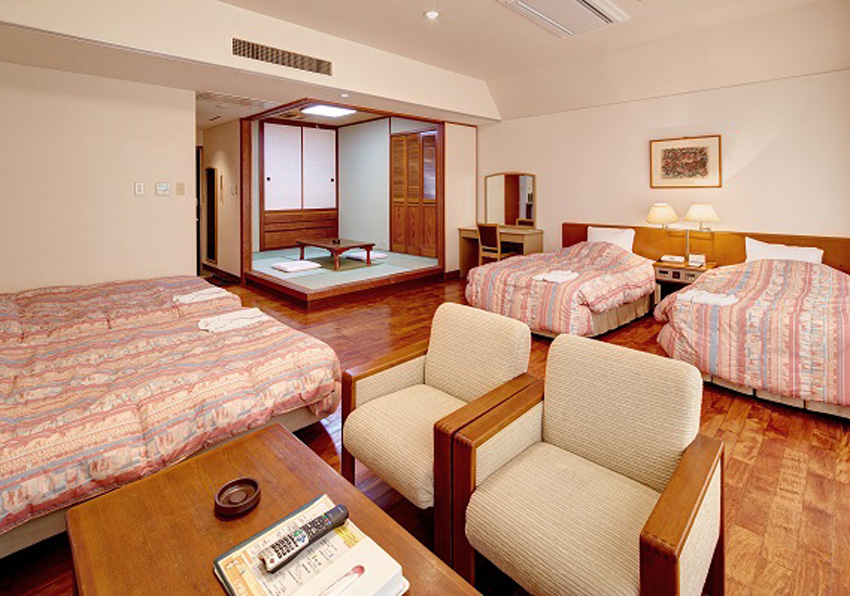 객실은 1〜2명이 묵기 좋은 트윈룸과 4개의 침대와 다다미 공간이 있어 대인원이 묵을 수 있는 패밀리룸 등 총 5개 타입의 객실♪