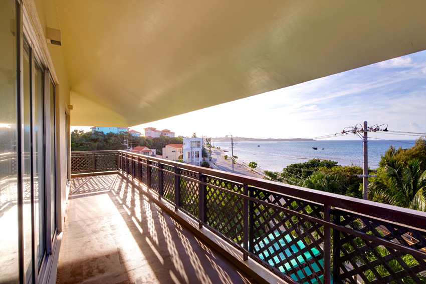 전 객실 오션뷰인 객실 발코니에서 맑은 날에는 모토부반도의 북서쪽에 위치한 작은 섬「이에지마(伊江島)」를 볼 수 있습니다.^ ^