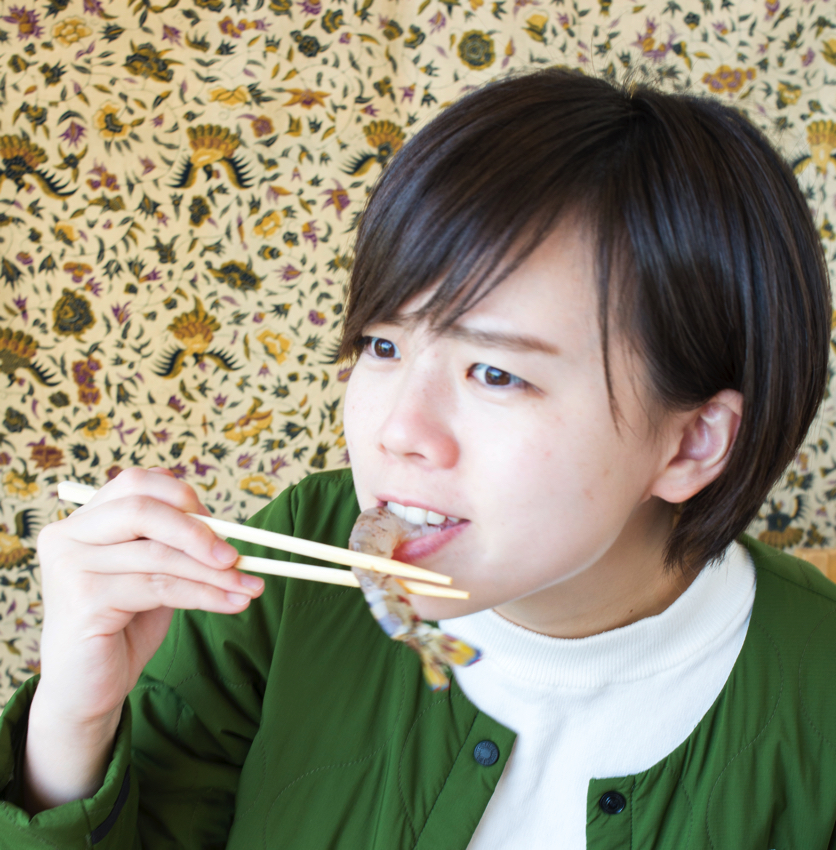 →从尾巴一口咬下去。因为刚炸起来酥酥脆脆,无法言喻的美味。